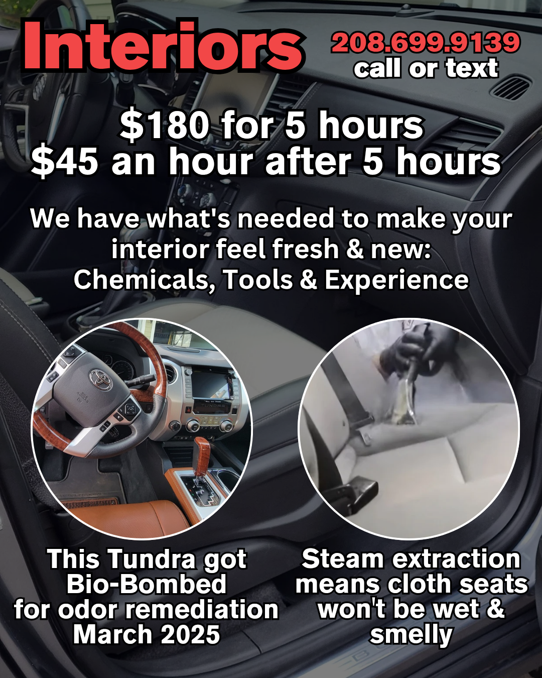 The detailing industry is very fluid & is always changing. We are constantly learning & educating ourselves, and trying new products & techniques that help make your vehicle look great. We strive to provide you with professionalism and great results. We also strive to provide services that don’t require a 5-year loan to pay off. We look forward to doing business with you!